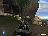 | ヘイローのマップはかなり広く,移動にはワードホグなどの乗り物が重宝する。これだけ広いのに,ロード時間を感じさせない作りになっているのは,スゴイ |