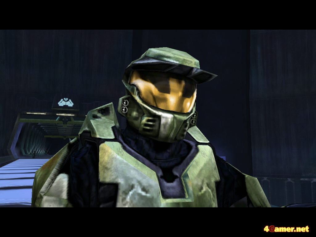 | 主人公のサイボーグ兵士,"マスターチーフ"。本名は不明。おそらく志願兵に改造手術を施したものだろう。ヘルメットのバイザー部分は反射率が高いので,表情をうかがい知ることはできない |