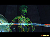 | 紅一点のコルタナ。ゲームでは音声と画面情報を通してナビゲーションをしてくれる。彼女の活躍で,徐々にヘイローの詳細が判明していくが…… |