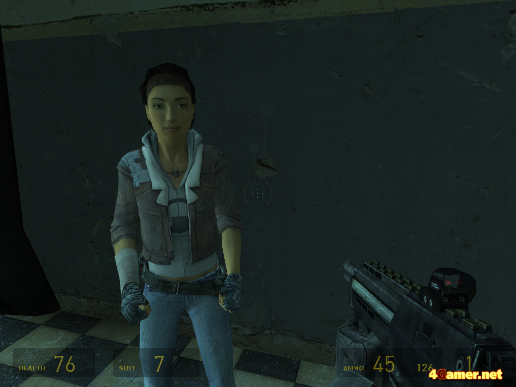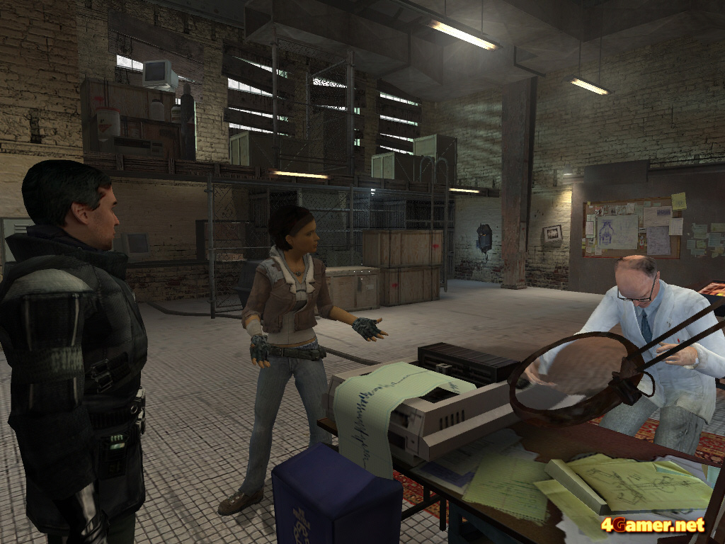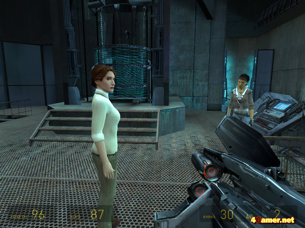 Half-Life 2のキャラクターは,ノーマルマッピングによって衣服の生地からアクセサリ,ベルト穴や靴ひもまでが丹念に描かれている。登場人物は多彩で,ブラックメサの惨事で生き残った当代随一の物理学者であるイーライ・ヴァンス博士,前作ではチョイ役なのに人気のあったバーニー,そしてブラックメサ・イーストでイーライの片腕として研究に勤しむモスマン博士やクレイマー博士などなど。忘れてならないのは,ブラックメサ時代は事務局長だったブリーン博士と,当時はまだ乳児だったイーライの一人娘のアレックスだ。アレックスは,ゲーム中ではゴードンと行動することはほとんどないものの,各所でストーリーを引っ張る重要なメインキャラクターである。
