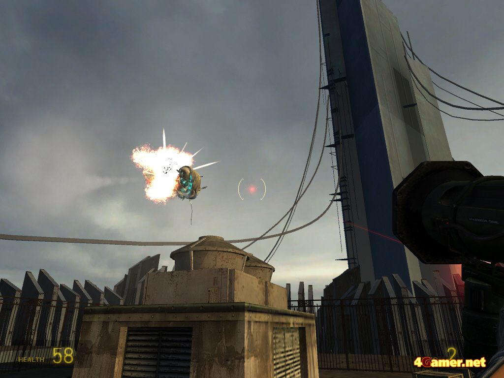インタフェースや操作感はHalf-Lifeを踏襲しており,前作をプレイしたことあるならほとんど同じ感覚でプレイできる。武器も前作からの引き継ぎが多く,新しいものはコンバインが携帯している"パルスライフル",アントライオンをコントロールできる"フェロポッド",そして重力操作で物を持ち上げたり放射したりすることが可能な"グラビティガン"(重力銃)の3種類。クロスボウはスナイパーライフルの代用として使うが,同じ場所に止まっている敵はほとんどいないため,活用する場面はなさそうに感じた。ピストルの威力は前作同様に非常に高く,中距離までなら十分に対処できる。