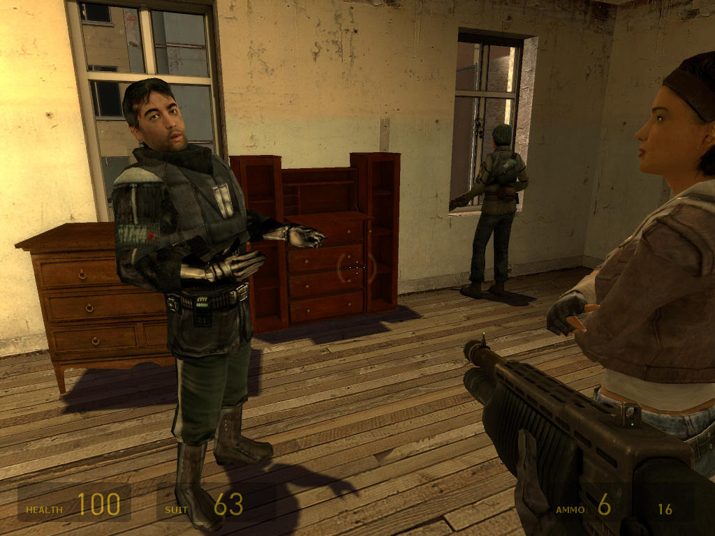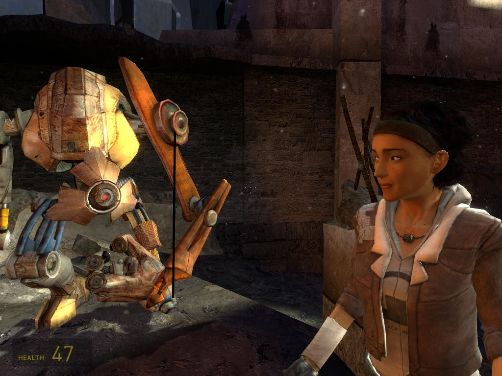 ValveのSourceエンジンの特徴の一つである表情アニメーション技術は,初登場してからすでに一年半が経過していながら,まだまだ業界最高峰である。もちろん,ゲームエンジンにまったく改良が加えられていないわけではなく,それはアリックスの頭髪やバーニーの防具などのテクスチャの,大幅なアップデートにも十分見て取れるはず。