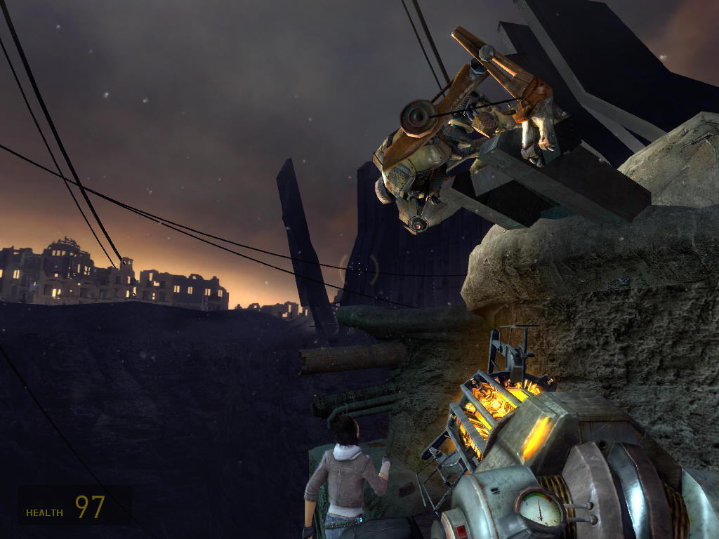 ともかく,残骸の中に埋もれていたところをアリックスのペットロボットDogに救出されたゴードン。今回は,五つのチャプターからなる全編を通じ,プレイヤーはアリックスと行動を共にすることになる。不安定なまま作動を続けているダークエネルギーコアを制止するために再びシタデルに侵入し,最終的にCity 17からの脱出するまでを,トータルで5時間程度のゲームプレイで描いている。シタデルやCity17の大部分は全壊しているが,なんとなく見覚えのある場所も多いため,前作をプレイした経験がある人なら,ストーリーの続きをそのまま進めているかのような錯覚を起こしてしまうかもしれない。