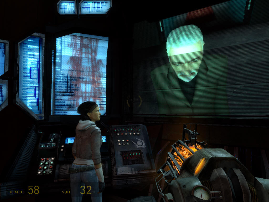 また,ナレーションやゴードン自身のセリフがないという状況は前作と同じだが,ウィットに富んだアリックスの“独り言”によってストーリーに自然な説明がなされ,プレイヤーの物語に対する理解が深まる。「ここ不気味ね」というような状況説明から,「この扉を開けるには○○が必要なんだけど……」といったヒント,そして「心配してたのよ……。あ,Dogだって喜んでいると思うわ」などの,いわゆる“キャラクターディベロップメント”的なセリフまで,彼女の視点や思考を通してゲームが進行していくのだ。
