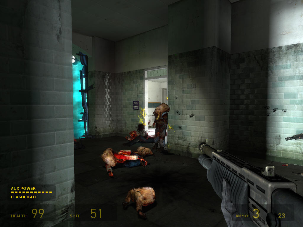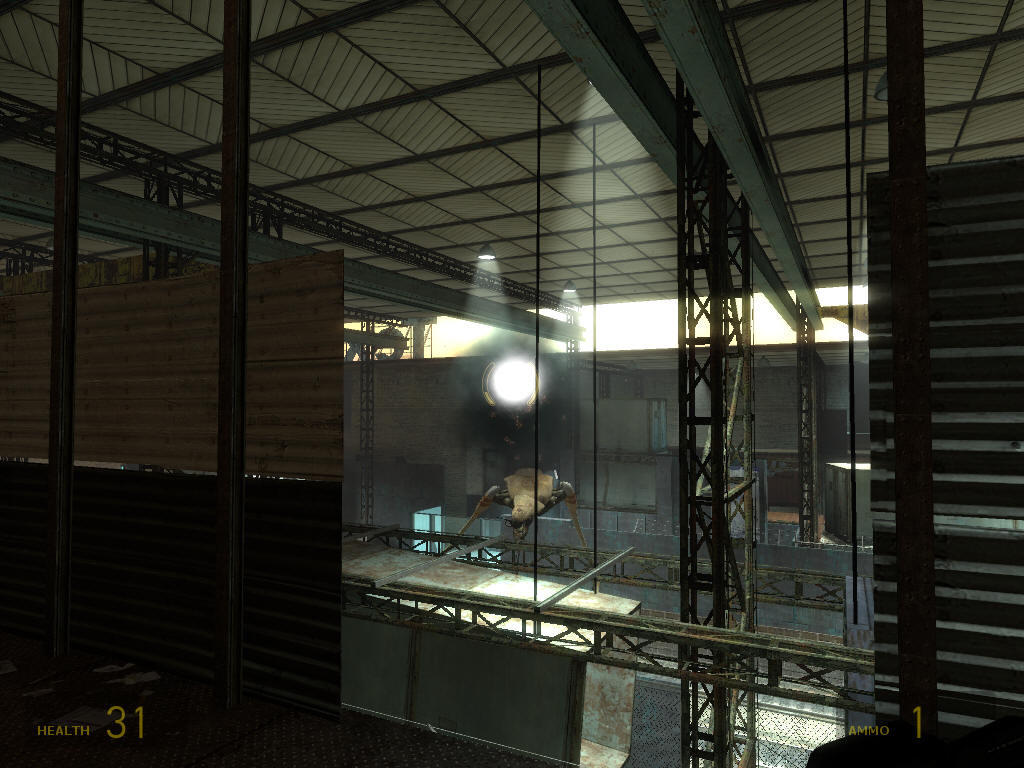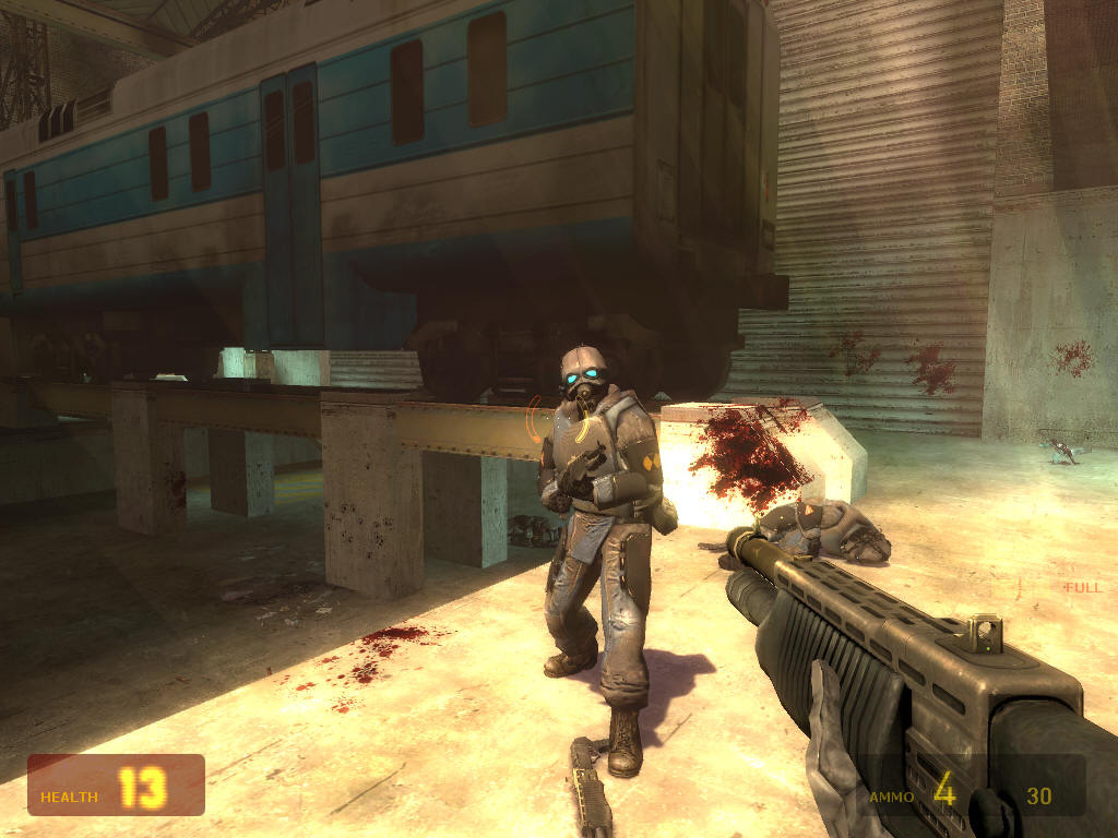 | Sourceエンジンのアップグレードの一つとして,HDR Lighting技術が取り入れられた。画像のコンバイン兵の体や武器にあるように,直接光が当たっているオブジェクトに対して,まぶしいような効果が見て取れる |