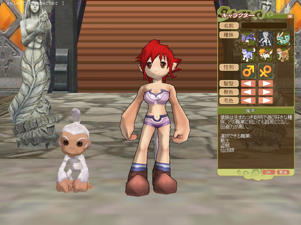 ●猿族 木の属性を持つ。戦士,盗賊,仙法師に転職できる。人間と大差ないせいか,あまり人気がない? |