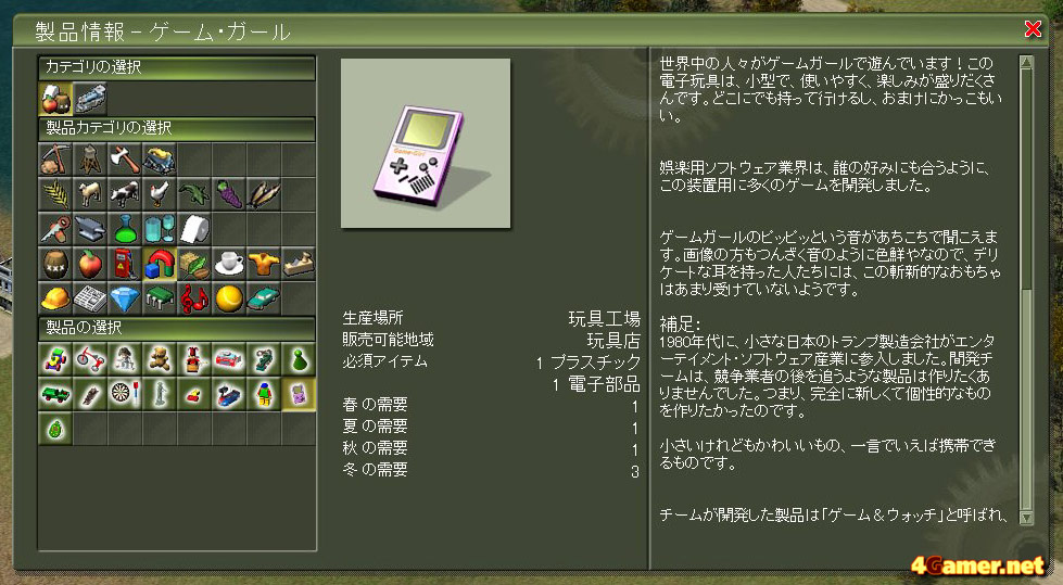 | 時代設定が2020年まで可能になったので,携帯ゲーム機やPCの製造/販売も可能になった。商品を製造するまでの過程が複雑でコストもそれなりにかかってしまうが,単価が高いので元は十分取れるはず | ||
