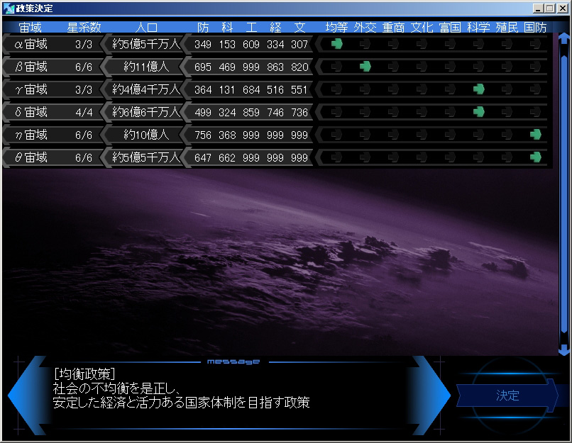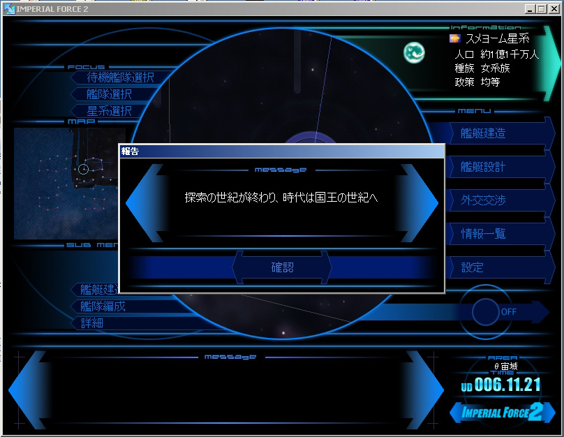 ゲームをプレイしていて一定の条件が満たされると,ダイアログで世紀が移行した旨が伝えられ,使えるコマンドが追加されたり,艦隊を構成する艦艇数の上限が増えたりする。世紀の移行によって得られるメリットは,プレイヤーもCPUも同時かつ平等だ。