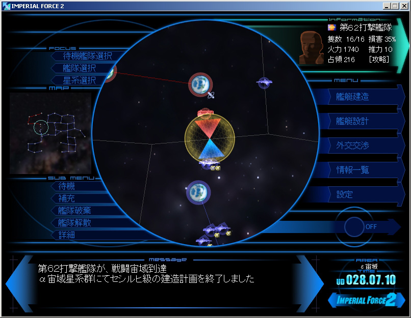 | 前作から15年の歳月を隔てて,ついに登場した「インペリアルフォース2 cosmic interceptor」。艦艇の設計や,ゲームの進行に合わせた時代の進化,それに伴うゲームスケールの変更など,新要素も盛りだくさんだ | |