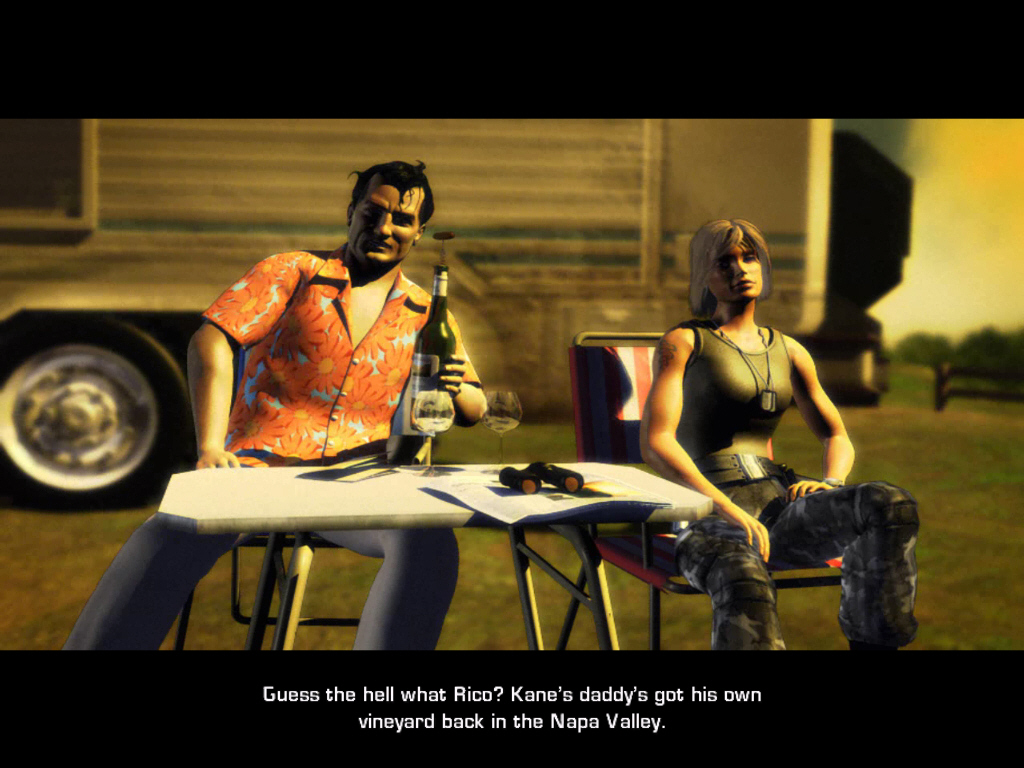 主人公は,CIAの諜報部員にして中南米の政権転覆のスペシャリスト(そういう仕事が本当にあるのかどうかは不明だが)であるRico Rodriguez(リコ・ロドリゲス)。独裁政権のリーダーであるメンドーサ(Mendoza)大統領を葬るため,地元のゲリラを指導しながら反政府勢力を拡大し,兵士や警察官達と激しい戦闘を繰り返すという,ハードボイルドながらもラテンの陽気なノリもほのかに漂う内容となっている。