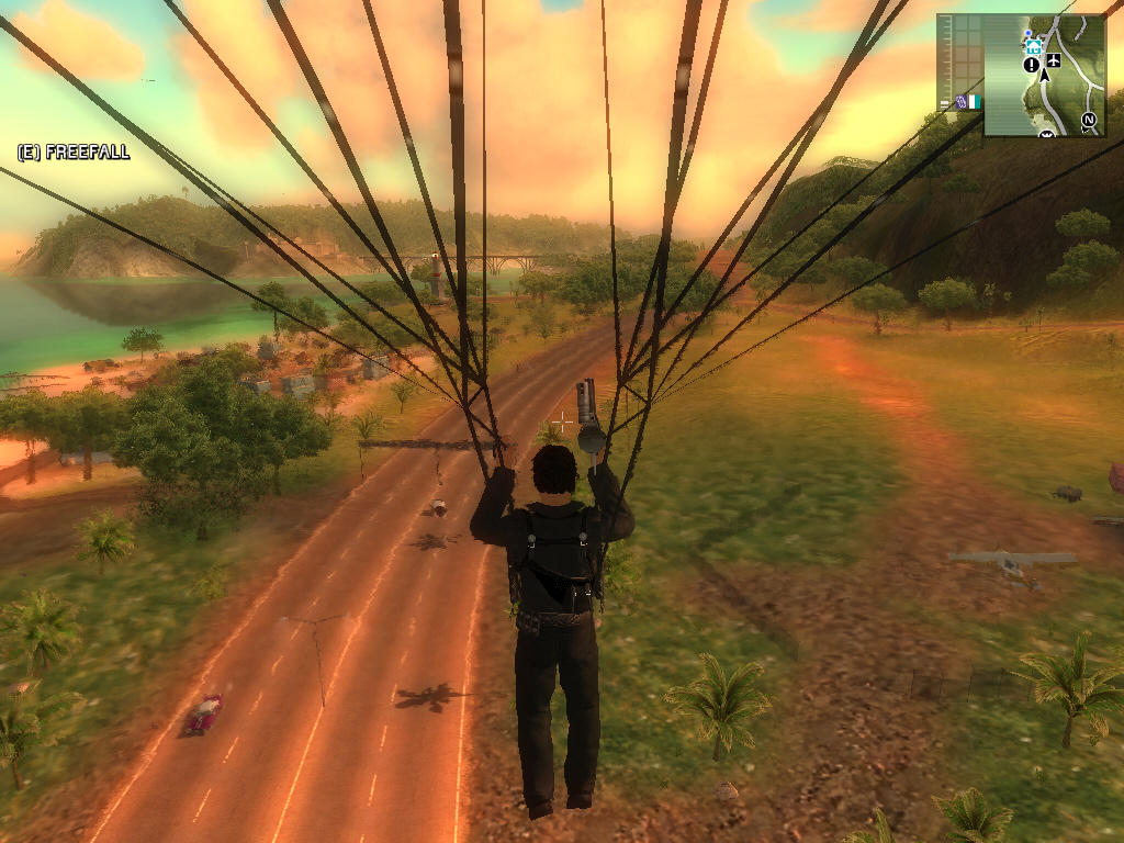 Eidos Interactiveからリリースされたばかりの「Just Cause」も,そんな柳の下の二匹目のドジョウを狙ったゲームだと言えるかも知れない。ただ,南国の風情や,「Far Cry」ばりのジャングルを描いたかなり見栄えのするグラフィックス,そして「架空の国の革命を手助けする」という独特のテーマが個性的であり,さらにヘリコプターで大空に舞い上がってはパラシュートでダイビングするような,アドレナリン系アクションも満載だ。本作をレビューする上で注目すべきは,やはりオープンエンドな世界において,どこまでプレイヤーの興味を維持できるかではないだろうか。