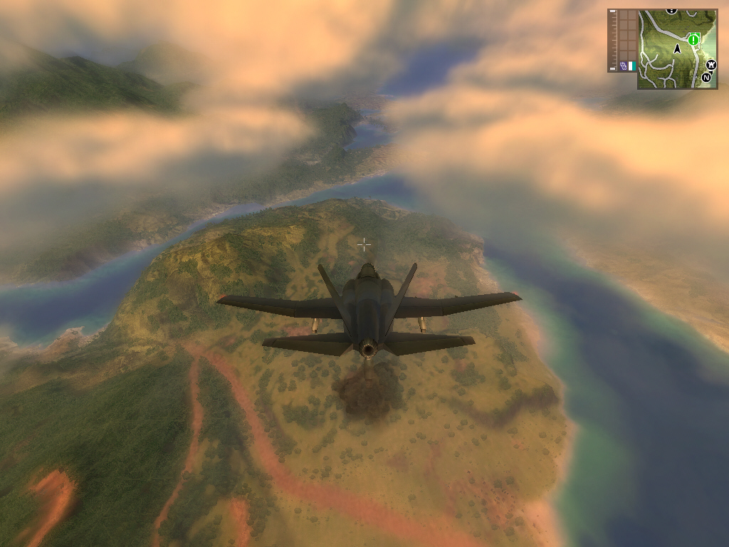 Just Causeで利用されているAvalancheエンジンは開発元が制作したオリジナルであるだけに,ゲーム世界の雰囲気には,ほかとは異なる独特の味がある。上空からフリーフォールすれば,晴れた日ならかなり遠くまで見渡すことが可能。一昔前に話題になっていたFar Cryでは1.2kmほどの視界範囲だったのに対し,このJust Causeは25kmと,ダントツのDraw Distance(描画距離)を達成しているのである。