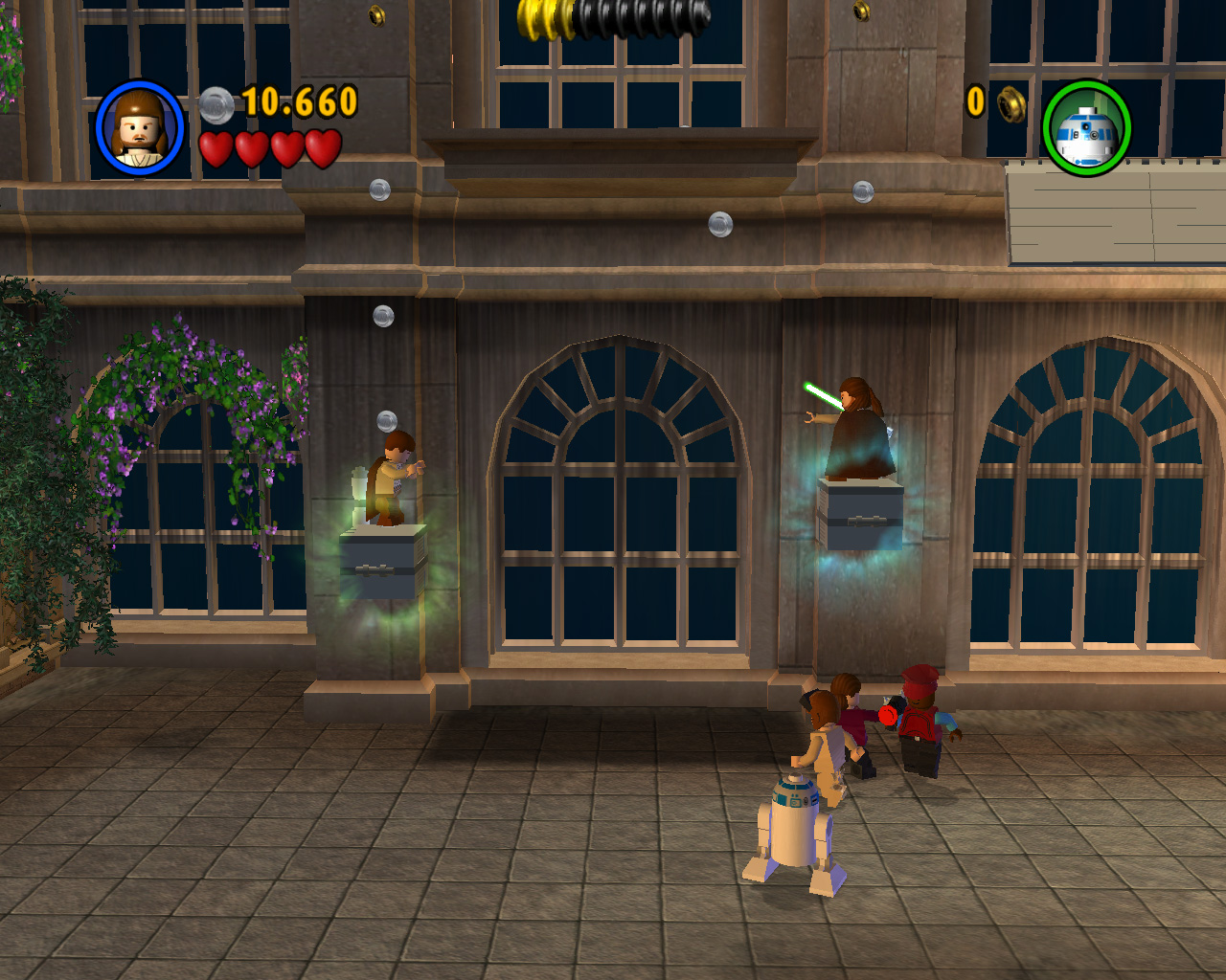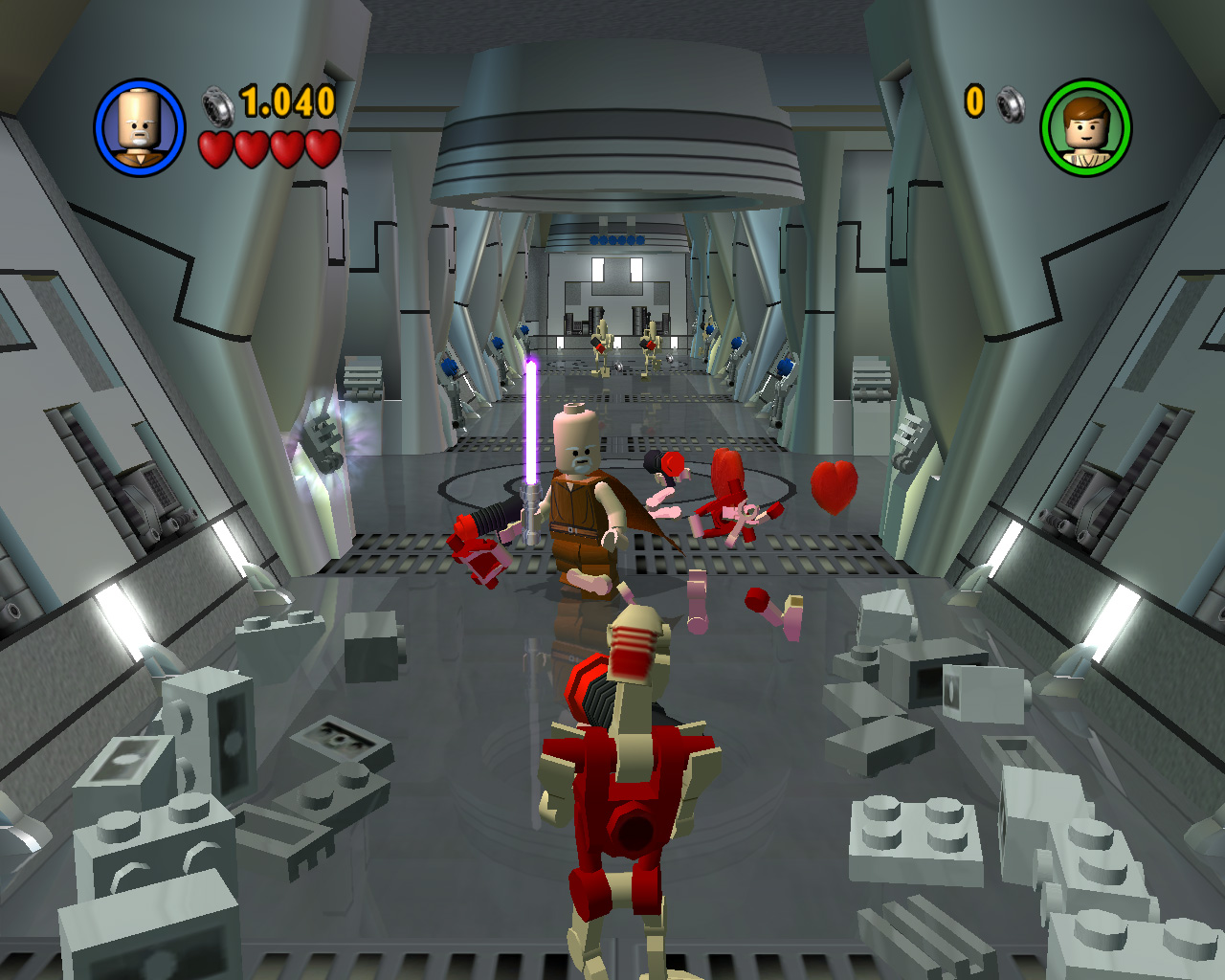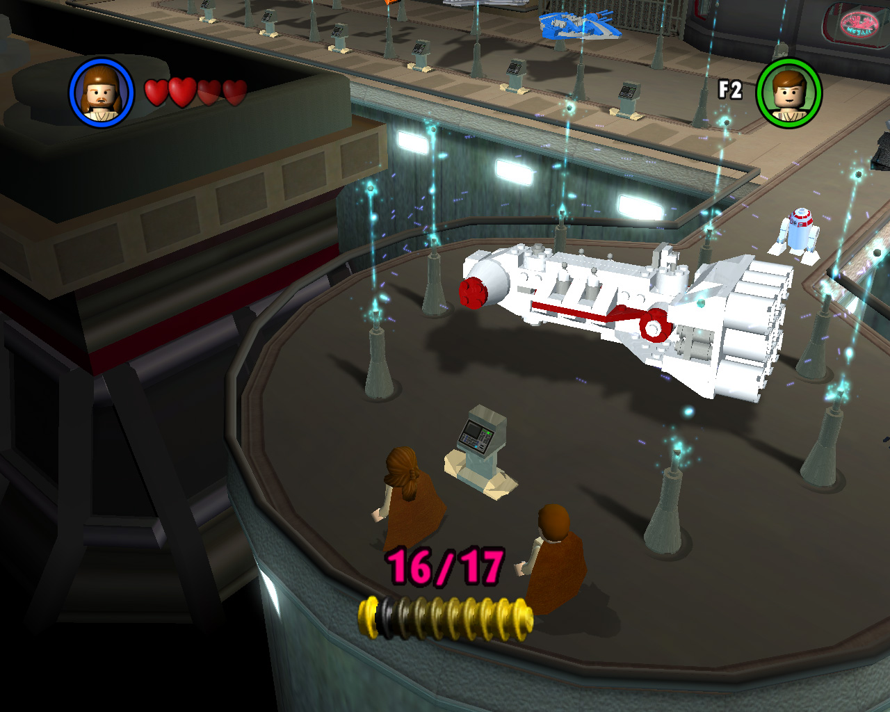 本作では,ジェダイ系のキャラでフォースを使ってスイッチを入れたり,バラバラになったブロックを組み立てることで道が開けたり,アストロメック・ドロイド(R2-D2やC-3POなど)でコンソールパネルを操作したりと,特定のキャラの能力が必要になる謎解き要素が随所に用意され,キャラを使い分ける場面が多々出てくる。2人プレイで遊べる作りのため,お互いにブロックに乗ってフォースで移動させるという協力プレイが必要な場面もある。といっても1人でプレイする場合,相方のキャラはコンピュータが操作してくれるのでご安心を。