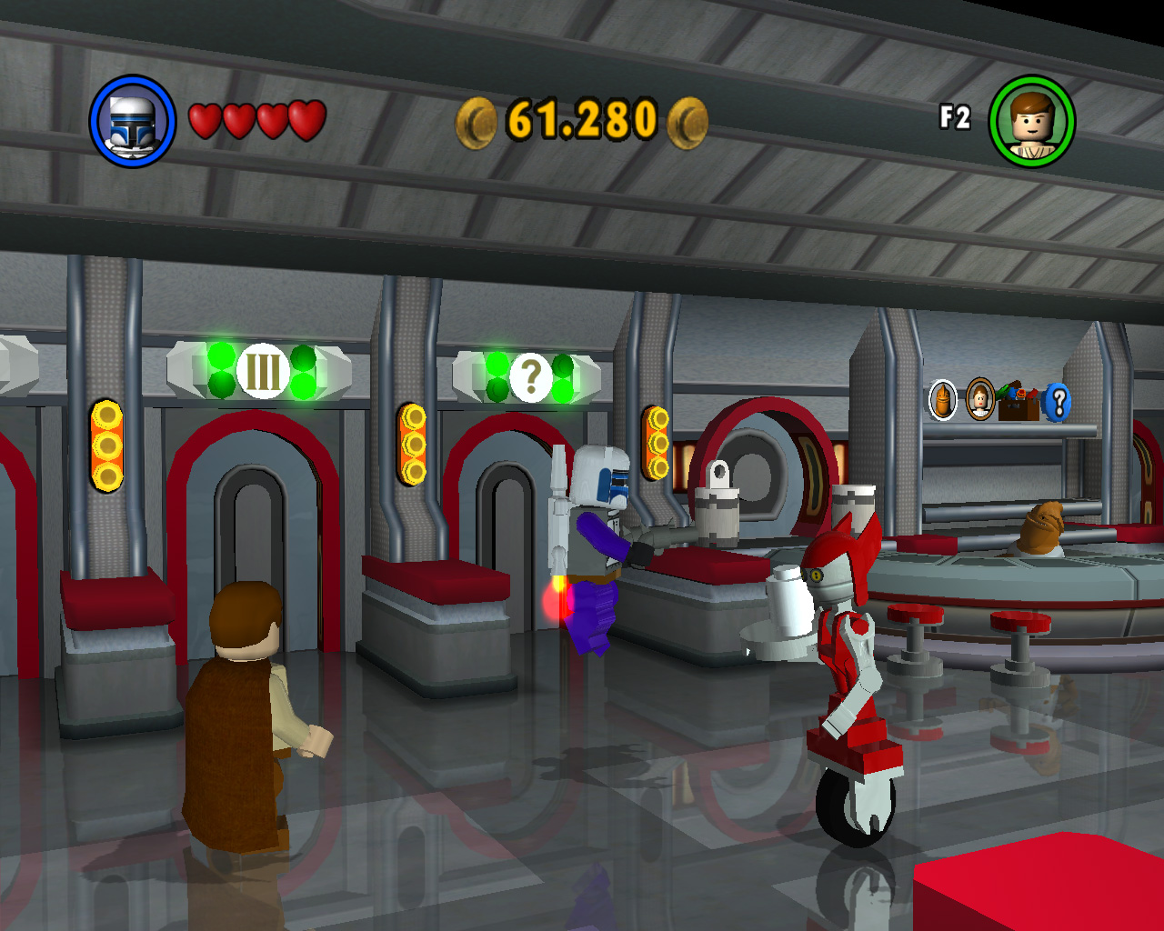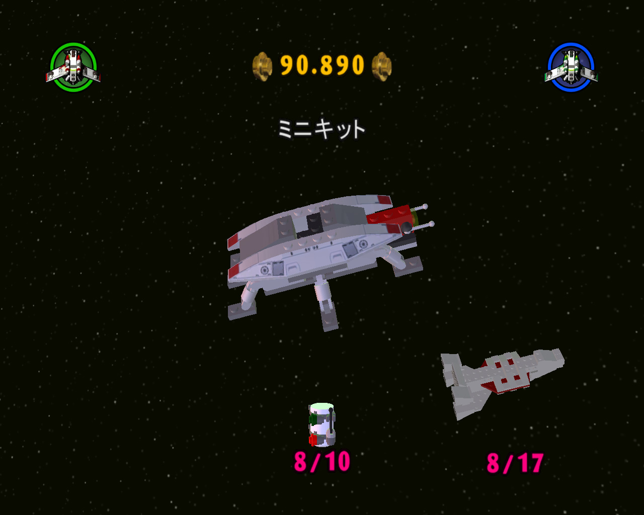 シナリオモードをプレイしていくと,今使っているキャラでは行けない場所が多く出てくるため,フリープレイモードでキャラを替えつつ進める楽しさはある。また,例えば各チャプターにはジェダイ・メーターという,コインを集めると増えていくメーターがあり,満タンでクリアすればレゴパーツが入手でき,全てのチャプターで満タンクリアを達成すればスーパーキットが完成する(隠しステージに入れる)。またチャプターごとにキャニスターと呼ばれる10個のカプセルがあり,全て拾えばレゴのミニキットが完成する。とくにキャニスターを10個集めるのにはかなり苦労するのだが,完成したミニキットはゲームで使用できるわけでもなく,単にデクスターズ・ダイナーの外に展示されているだけ……というのはやや寂しい。せめてミニゲームなどで,集めたミニキットを使えたらなぁと思ってしまった。
