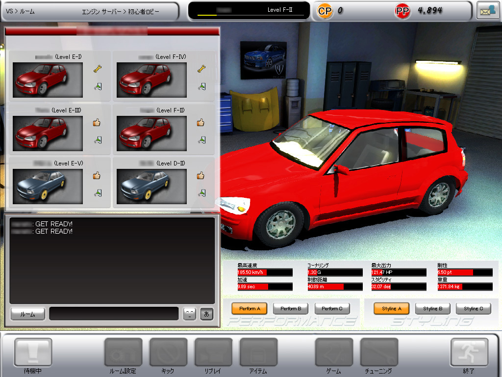 具体的には,通常のロビー画面やルーム画面では一般的なクライアント/サーバー方式だが,レースが始まるとプレイヤー間でのP2P(Peer-to-Peer)方式に切り替わるというものだ。こうした特殊なシステムを採用しているため,これを重点的にチェックすべく行われたのが,技術テストというわけだ。