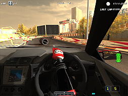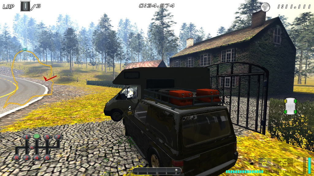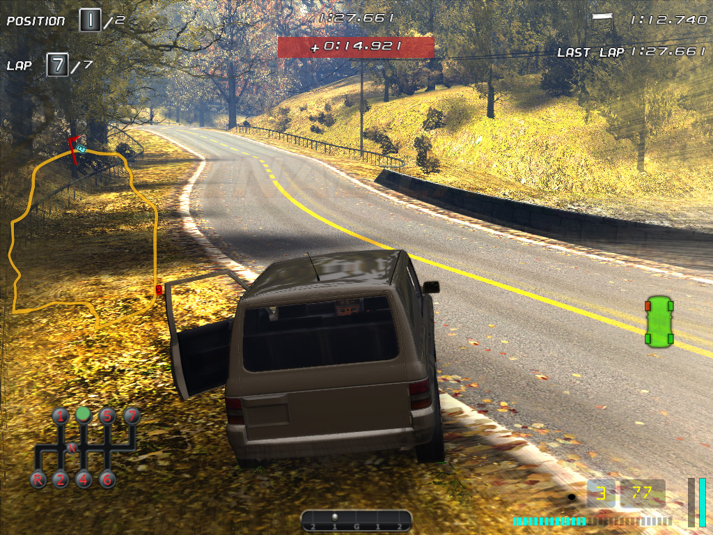 | 減速が不十分だったため,コーナーで外側へと飛び出し,そこに止まっていたキャンピングカーに衝突 | アーケードチックな強引な走りはできず,真剣にハンドリングしないとスピンしてしまうことも |