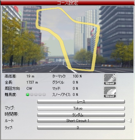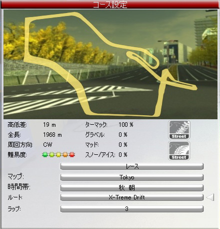 ちなみに,そのほかのTokyoマップのルートには,「Short Circuit 1」と「X-Treme Drift」がある。