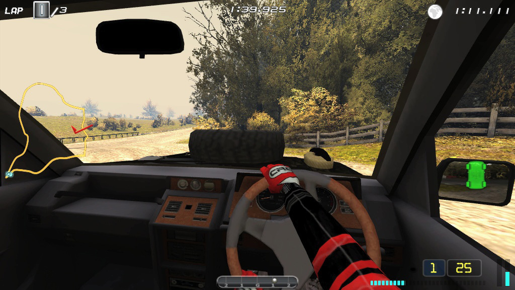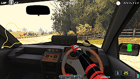 ちなみに,Englandマップのようなオフロードコースは,前述のとおりデフォルトの2台のうち,四駆のC Racer Xでしか走れない。しかし,グラベルやマッド部分には良いのだが,ターマック(舗装)部分には向いていない。そもそもが悪路用であるために車高が高く,サスも柔らかい。そのため,もう1台のデフォルト車であるCorus S2で,ストリートやサーキットを走るのと同じ感覚でターマック区間を走ろうとすると,かなりヨタッてしまう。