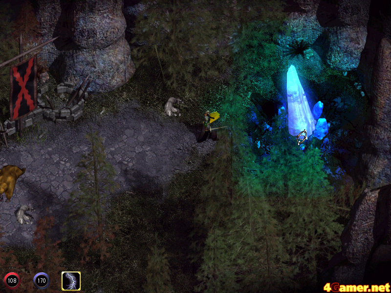 | ところどころで発見できる青い光球を取ると,マナが増える。同様に赤い光球では体力が回復する |