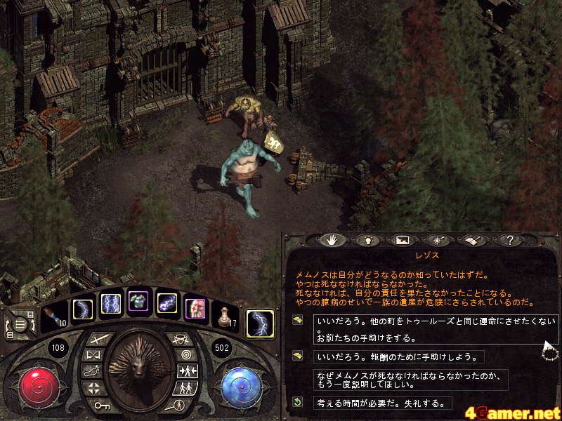また,メインストーリー以外にも数え切れないほどのサブクエストが用意されており,これまた途中でいろいろと分岐する。サブクエスト同士が複雑に絡み合ったり,相反するクエストがあったりと,なかなか侮れない。場合によっては,あるNPCから依頼された「○○を倒してくれ」というサブクエストの途中で,敵対する相手の話を聞いて心を変え,最初の依頼者の敵側に回る,という展開もあり得るのだ。