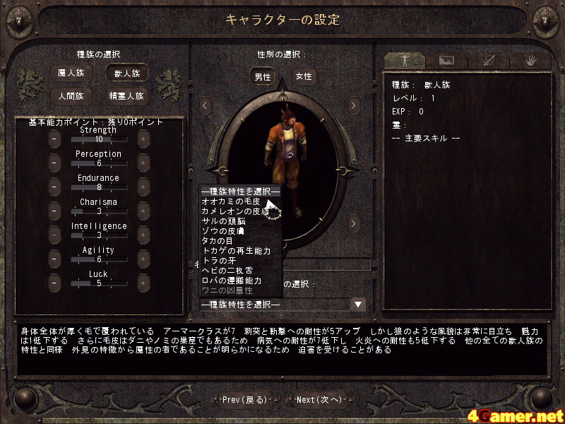 - 種族……基本的な能力に影響する。4種族の中から一つ