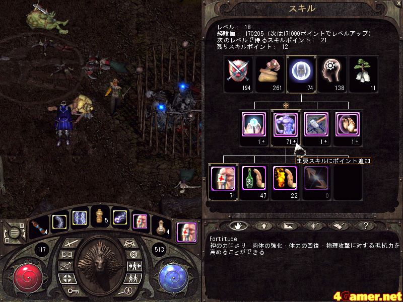 さらには,レベルアップ時にスキルポイントを好きなスキルに割り振ったり,新たに取得する特技を選んだりと,キャラクターの成長の方向性もコントロールできる。特定の魔法の能力だけを高めたり,毒や病気に対する耐性をつけたりという具合に,さまざまなチューンも可能だ。