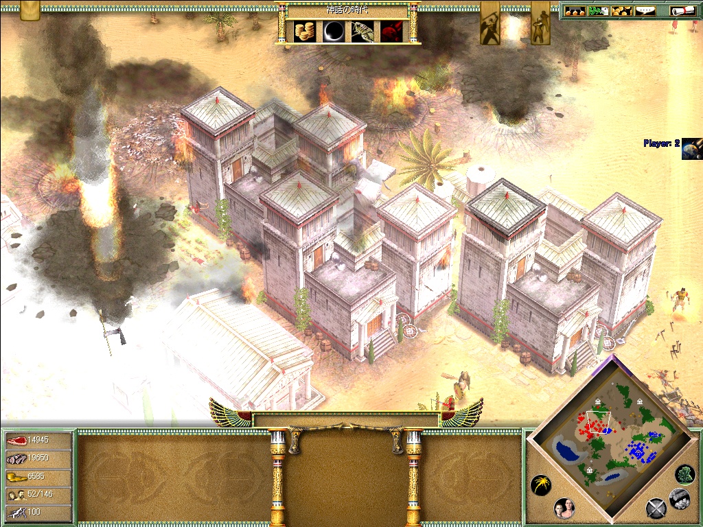 | 内政面を簡略化し,ゴッドパワーなど新しい要素を絡めた駆け引き性が前面に押し出されている | ゴッドパワーは非常に強力。これは,エジプト系の従神「トト」のゴッドパワー。天空から隕石群を落下させ,指定したエリアの敵を殲滅する |