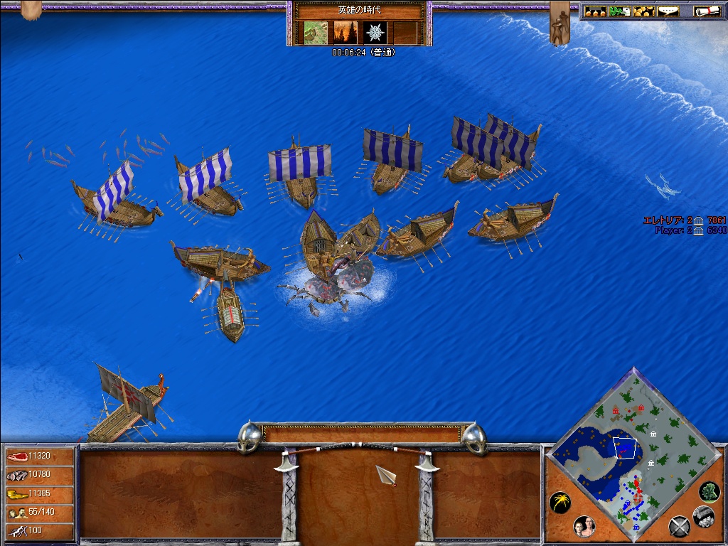 | 海上にも神話ユニットは登場する。少数でも何倍もの船団と渡り合えるのだ |