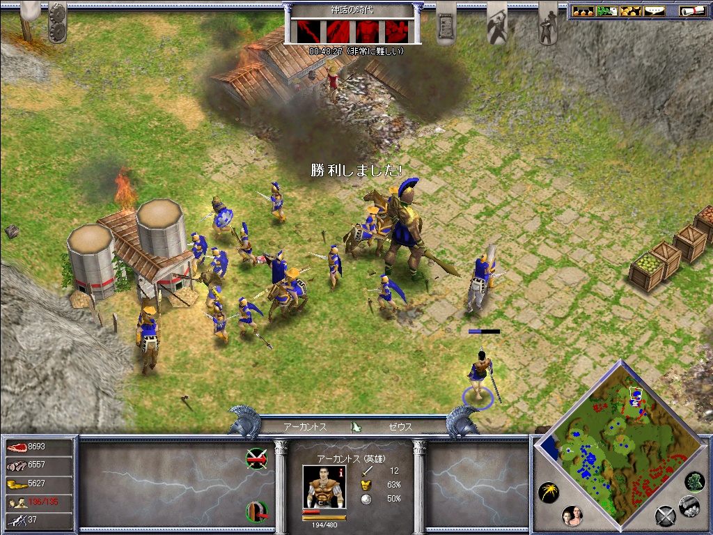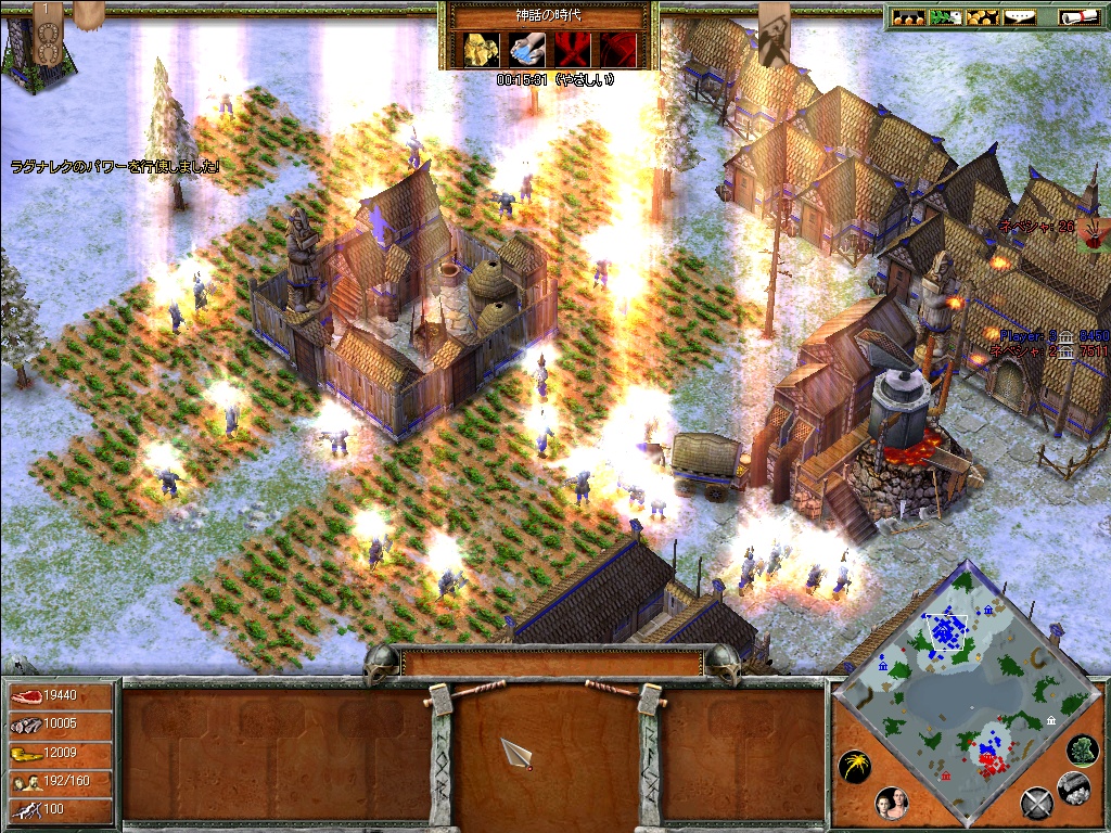 最新作であるAoMは,内政の簡略化により確かに遊びやすくはなったかもしれない。しかし,同時に本来持っていた"味"や"深み"といったモノを失ってしまったように感じる。内政競争的な要素が削られた"AoE"は,非常に淡泊で物足りないものがある。もちろん,それに代わる要素としてゴッドパワーや従神の選択などの要素があるわけだが,それは結局"プラスα"でしかなく,ゲームの根本的な要素の問題とはリンクしていないのだ。