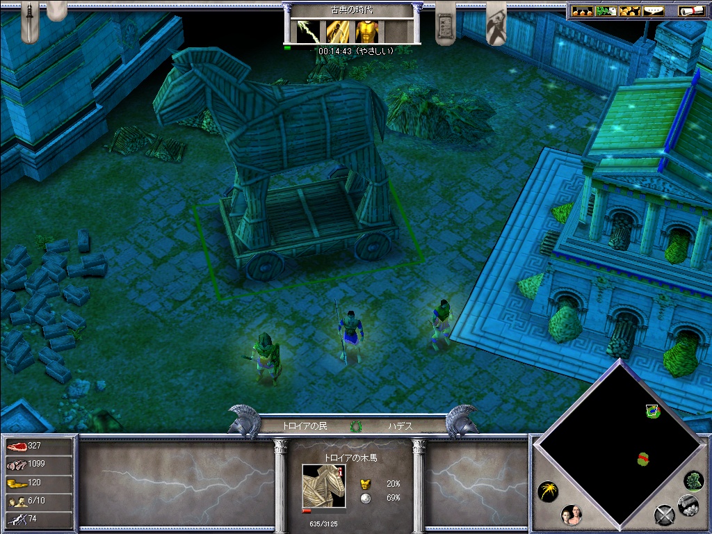 加えて,シングル用のキャンペーンが非常に充実している点も,AoMの大きなウリの一つとなっている。正直,マルチプレイ偏重でシングルプレイモードの出来がいまいちだった従来のAoEシリーズに比べ,シームレスで挿入されるムービーシーンや3Dグラフィックスを十分に生かした演出など,丁寧に作り込まれた全32シナリオのキャンペーンは遊び応え十分。ギリシャの英雄アーカントスが繰り広げる冒険活劇を存分に楽しむことができる。Ensemble Studiosにしても,AoMでは新しいファンを獲得したいとの思いが強かったようで,既存のファンのみならず,RTS初心者も純粋に楽しめる配慮がなされている点は手放しに嬉しい部分といえよう。