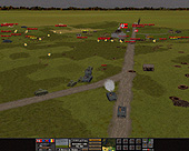 なにはともあれプレイ開始だ。それぞれの部隊に目標地点を指示し,しかるのち"GO"ボタンをクリックして戦略フェイズを終了し,アクションフェイズへと移行。すると兵士達が攻撃発起点から立ち上がり,ゆっくりと前進を開始する。期待と緊張の一瞬。敵の姿はまだ見えない。このゲームには索敵という概念があり,適切な距離まで近づかないと敵の姿は見えてこない。言い忘れたが目標はマップのところどころに立っているフラグであり,これらの戦略目標をすべて取るとあんたの勝ち。だが各シナリオには規定のターン数があり,あまり早く目標をゲットしてしまうと今度は最終ターンまでフラグを維持するのが大変だったりするので要注意だ。