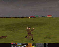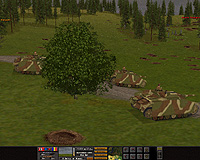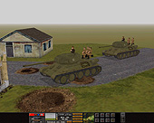 60秒のアクションフェイズが終わると,ターンが終了して「応援部隊が到着しました」の文字が。やったぜ,こちらにも戦車戦力の支援だ。どれどれ。こ,これは。トゥラーン戦車だと! チェコのT-22をハンガリー仕様にした戦車で,もともとたいしたことのないT-22をハンガリー仕様にしたせいでもっとたいしたことのない戦車にしてしまったというマニア垂涎のレアものだ。よしかかれ,トゥラーン戦車小隊4両よ。と命令するまでもなく,自分で敵を見つけて発砲する戦車小隊。これに限らずAIはなかなか頭が良く,特別に命令しなくても基本的なことは自分でこなす。だがしかし敵の攻撃を食うと,かなりあっさり"動揺"とか"混乱"とか"パニック"に陥り,戦闘不能状態に。カルシウム足らんぞ貴様ら。聞いたところによると,ソ連軍には"ヒューマンウェイブ"という攻撃法があり,ようするに全滅覚悟の万歳突撃らしいのだけど,いーのかね? ウラー! ウラー! やられてこちらへ逃げてくる味方を「臆病者」とかいって撃ち殺せたりして(筆者注:できません)。