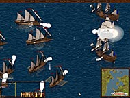 視覚効果は,最近のゲームらしく派手なエフェクトとなっている。弓兵の放つ矢の軌跡や延焼する建物,派手な爆発……。これ以上に派手なのが海戦だ。戦艦の砲弾は画面狭しと飛び交い,船は派手な爆発によって木っ端微塵になって水柱が立つ。