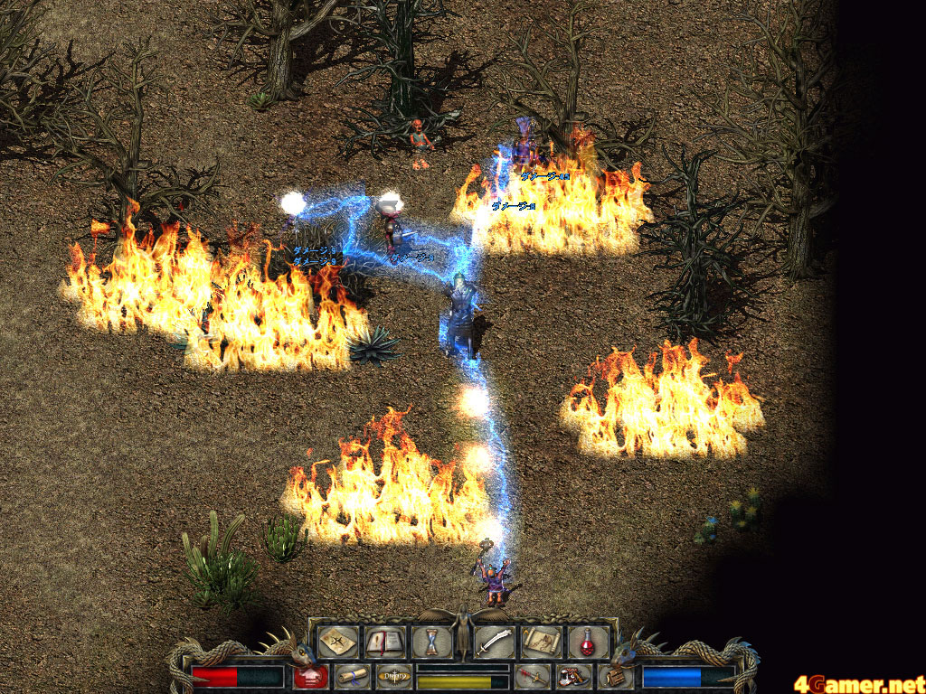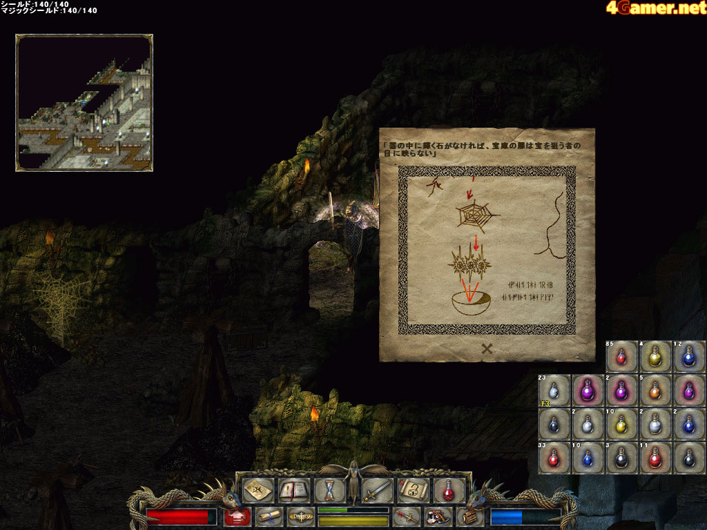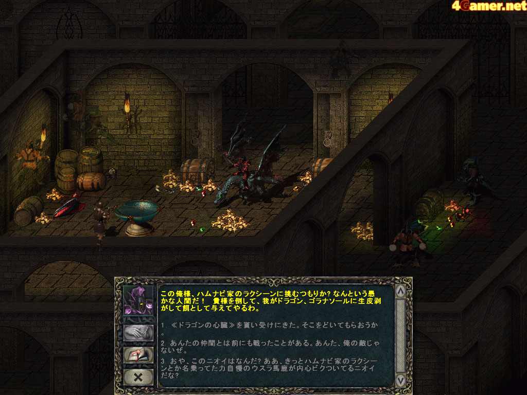 DDのシステムを説明するのは,非常に簡単だ。多くの読者は,「ディアブロタイプ」のひと言で,理解してくれるだろう。正面上方から見下ろした2Dのグラフィックスのフィールド上を,一人のプレイヤーキャラクターが,フィールド上を左クリックすればその場に移動し,NPCを左クリックすれば会話し,モンスターを左クリックすれば攻撃する。そして右クリックすれば,魔法などのスキルを発動する。