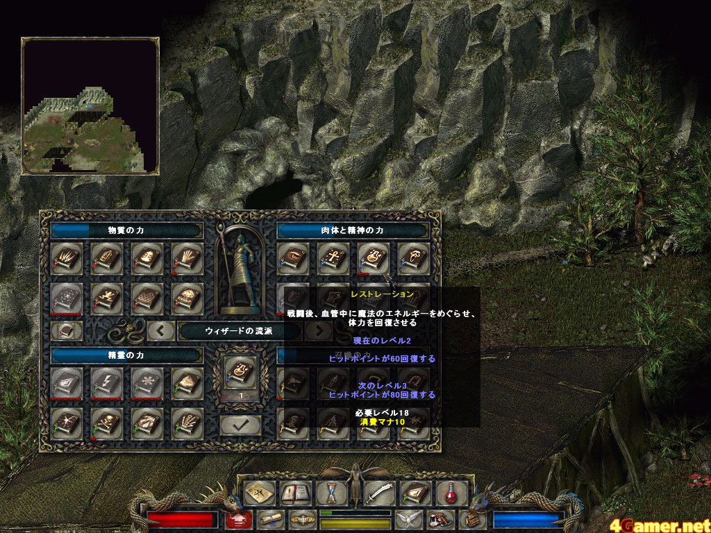 主人公キャラクターは,サバイバー,ウォーリアー,ウィザードの3クラス×性別の,計6タイプの中から選ぶことになる。ただクラスごとの差は初期能力と戦闘に関する各種計算式くらいで,全部で96種(×5レベル)用意されたスキルは,どのクラスだろうが,自由に習得できる。つまり,(強いとは思えないが)攻撃魔法が得意なウォーリアーも,盗みが得意なウィザードも育て上げられるというわけ。
