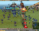 | 中世の頃になるとユニットの種類は豊富になり,戦いも複雑に | 槍を携えた騎士は,歩兵系ユニットを一気に突き崩す突進力を持つ | 海戦の賑やかさも,エンパイア・アースの大きな特徴の一つだ | 陸戦最強のユニットであるロボット(Mech)は,戦車などの3倍近いHPを誇る |