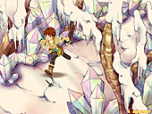 | 幻想的なエリアを踏破していくというのがピッタリの,描き込まれた背景 | もちろんボスモンスターも登場する。相手の動作を鈍くする魔法は必須だ | まさにファンタジーといった感じの戦闘シーンは,プレイしていて飽きさせない |