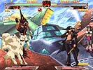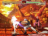 | これはホントに格ゲーの画面か? 戦闘中に登場するアニメーションも非常に凝った作りだ | キャラクターが行動を起すと飛び散る土煙。このあたりエフェクトに凝っているのが本作の特徴 | このようなデカイキャラも縦横無人に暴れまわる | これを食らうと一定時間行動が制限される |