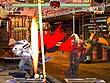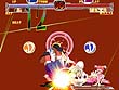 | 扇子の裏で八つ裂きにされている敵。ご愁傷さまです | 各キャラクターのインフォメーション画面には簡単な技表がある。初心者にはありがたい心くばりだ | 攻撃されると真っ赤な鮮血が……。教育上よくないが,銀色よりはマシか | たくさんの人が踏み倒したあげく…… | 転んだおばさんのハラでキメッ! もはや理解不可能デス。 |