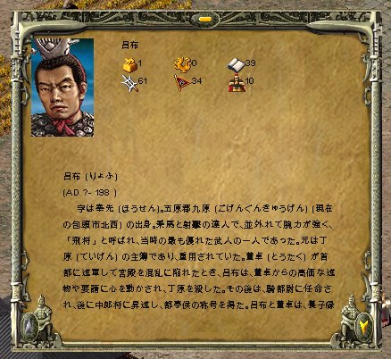 勇猛をもって知られる「呂布」だが,お約束で忠誠心が異様に低いという欠点を持つ