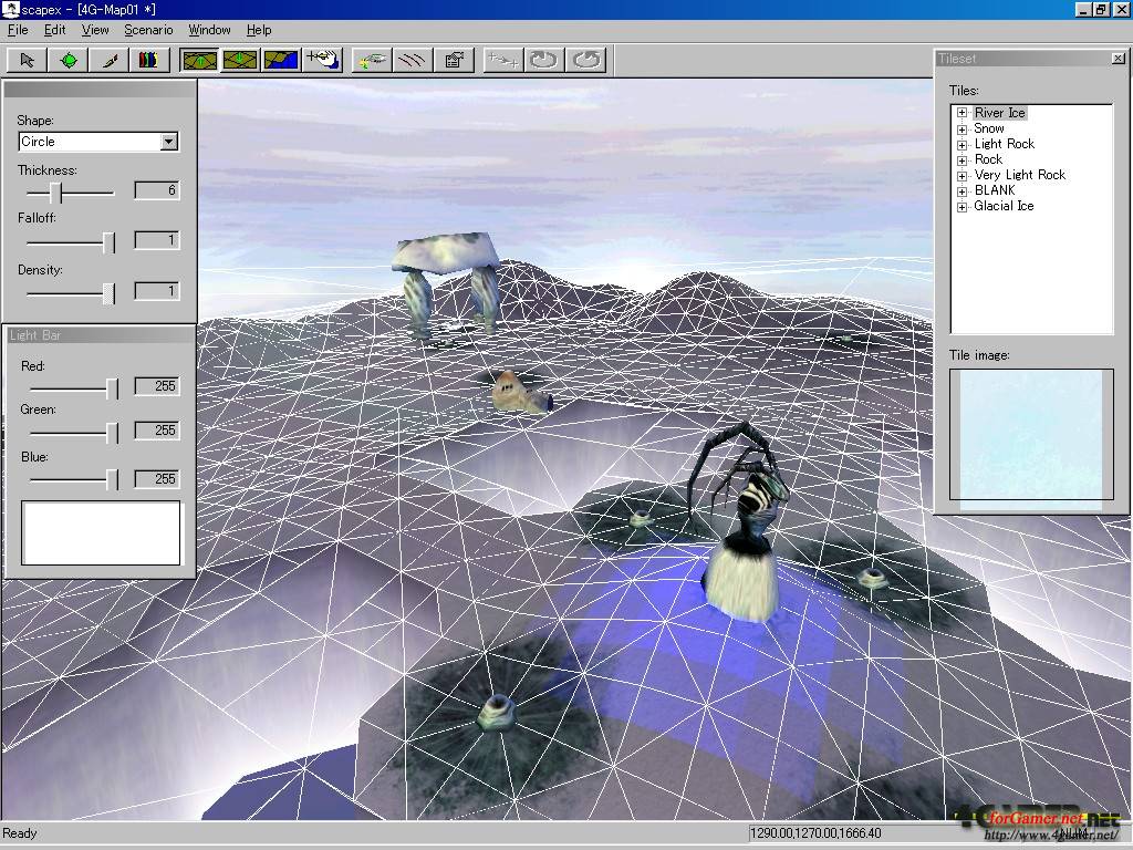 地表に高低差を付ける作業では,ワイヤーフレーム表示にすると高低差をつかみやすい
