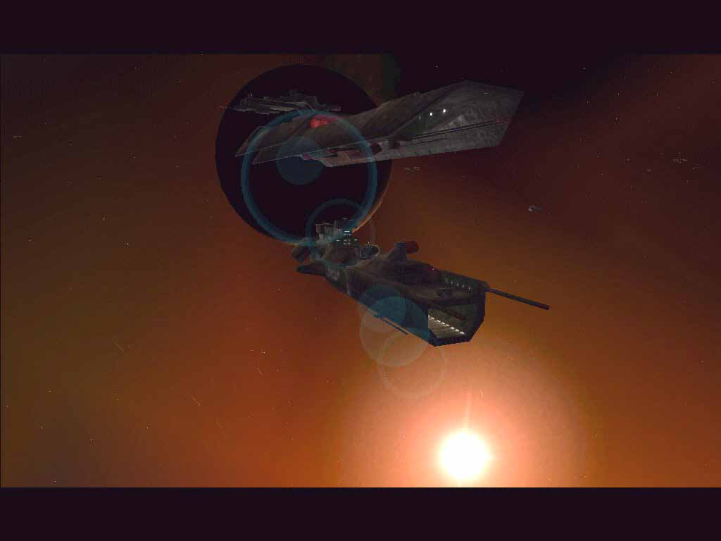敵の旗艦と空母によるランデブー。太陽を背にしたアングルがカッコいい