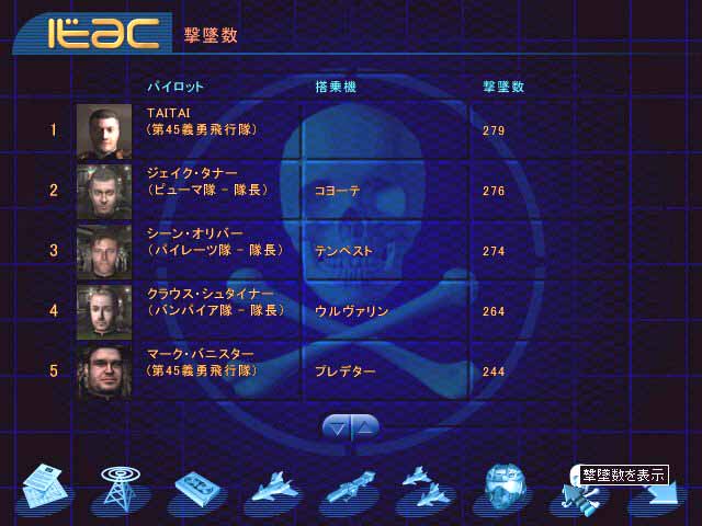 お馴染みともいえるスコアボード。各飛行隊の隊長ばかりが名を連ねる