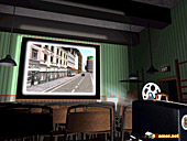さて,ゲームを始めてみよう。メインとなるイタリアンジョブモードを選ぶと,最初はブリーフィング画面だ。カラカラと映写機が回り,英語の説明が始まる。字幕なし。マニュアルにもブリーフィングの内容などは書かれていない。うふふ,望むところだ。言っちゃなんだが英語は得意である。……まったく分からない。