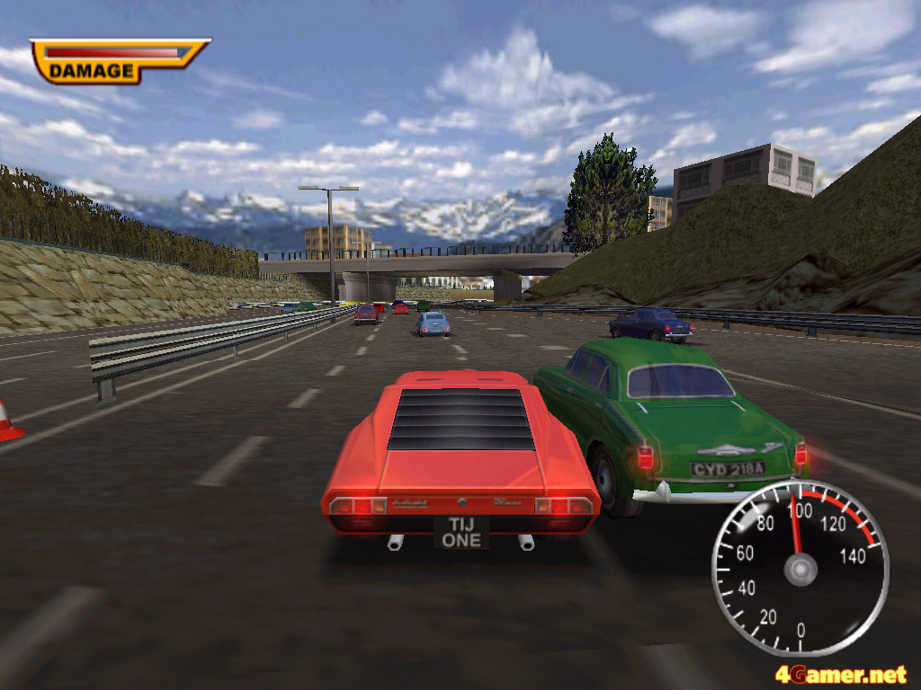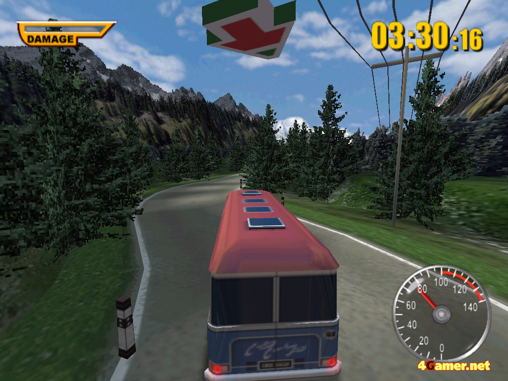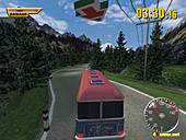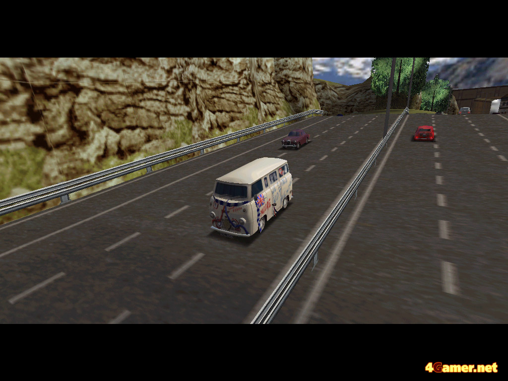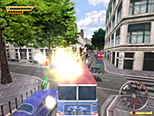 では単純なレースゲームかというと,これがなかなか。車種によって細かく挙動は変えてあるのものの,全体的にどのクルマもドライバーのいうことを聞かないのである。こう,なんちゅうか,パッドの操作に反応が微妙に遅れたり,回転半径が意外なほど大きくて壁や街灯に命中したりと,最初はかなり腹が立つはず。キー! 町をゆくAIカーも意地悪で,こっちが追い抜きかけてんのに強引な車線変更をしてきたり,頑固に道をゆずらずノロノロ運転したり。"ニトログリセリンを動きの鈍いバスで運ぶ"というとんでもないミッションがあるのだが,道行くクルマが問答無用でぶつかってきて,どっかーん。おまえら,ちょっとは考えろよな! 視点が固定のため,とくに大型車を運転している場合は前にクルマがいるのかいないのかわからない。気がつかないうちに変なダメージが溜まっていたりするのだ。