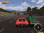 というわけだが,実際あまり気にする必要はないだろう。ブリーフィングがさっぱりわからなくても,ミッションに入ればやるべきことはすぐにわかるのだ。なにしろプレイヤーのやることはクルマの運転。それだけなのだ。「GTA3」のように車を降りる場面はなく,当然そこらへんの一般ピープルをカツアゲする必要はないしバズーカ砲もない。行くべき方向は画面上部のでっかい矢印が指し示してくれるし,右上の数字がどんどん減ったら「なるほどこれはタイムアタックなのだな」ということがわかる。もともとプレイステーション用のゲームであるだけに,ユーザーインタフェースは迷いようがないくらい親切だ。