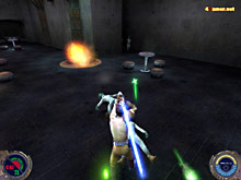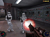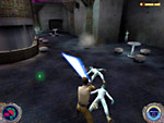 フォースパワーを使用できるようになると,遠くのものを押したり引いたり,高いところにジャンプできるようになったり,走る速度を速めたりなど,かなり多彩な技を使えるようになる。また,相手の精神に働きかけて,こちらの存在を気づかないようにさせるなどのこともできるので,撃ちまくって血路を開くゲーム前半とはかなり違った展開を楽しむことができるという二面性も持っている。