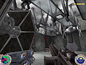 | スターウォーズ永遠のザコキャラ,ストームトルーパー | 帝国軍 TIE Fighterの格納庫。上から乗り込むというのが,なんともレトロっぽい | 捕虜を使って扉を開かせる場面も登場する。捕虜を撃ち殺してしまうとゲームオーバー |