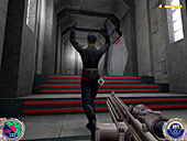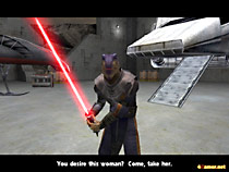 ストーリーを追いかけていくシングルプレイも十分面白いジェダイナイト IIだが,マルチプレイがこれまた大変面白い。とくにライトセーバーでの斬り合いは,時代劇のチャンバラそのものといった感じで,アクションゲームといえば銃で撃ち合うというのが一般的なだけに実に新鮮だ。このあたりの感じ方は万国共通なようで,マルチプレイでもどちらかといえばライトセーバーのみでの斬り合いをしているプレイヤーが多いようだ(余談だが,ライトセーバーを持ったプレイヤーに銃で挑むと,なぜかこちらが悪いことをしているような気がしてくるから不思議だ。時代劇で,剣を構えた主人公の背後から悪代官がこっそりと銃で狙いをつけているといった感じ,とでもいったらよいのか)。