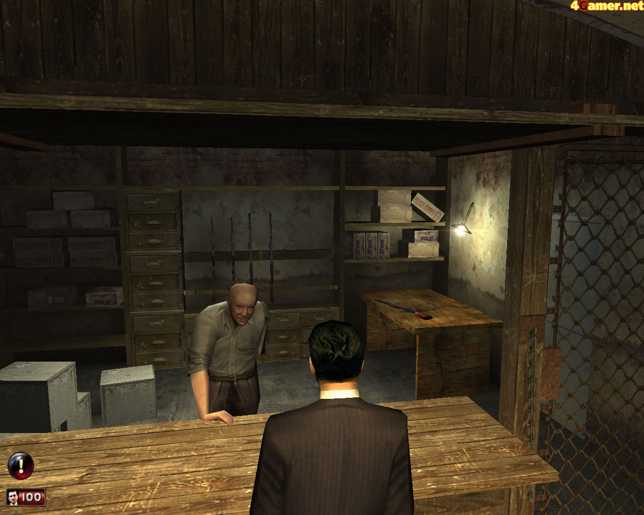 武器の入手はもっぱらファミリーの武器係,ビンチェンゾからもらうことになる。殺した敵が落とした武器を拾うことはもちろん可能だ。敵AIは比較的優秀で,物陰にかくれながら接近したり背後に回ってきたりする。もっとも,その場を動かないやつや何発撃ち込まれても死ぬまで気がつかないような鈍いのもいるから安心だ(何が?)。